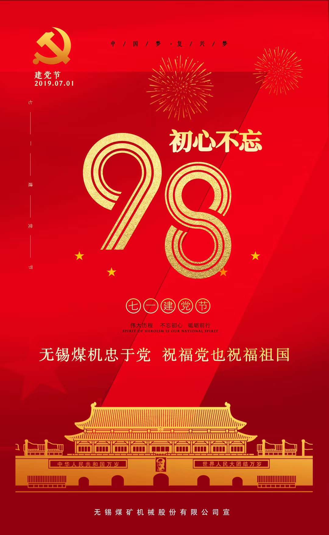 無錫煤礦機(jī)械股份有限公司熱烈祝賀中國共產(chǎn)黨建黨98周年!